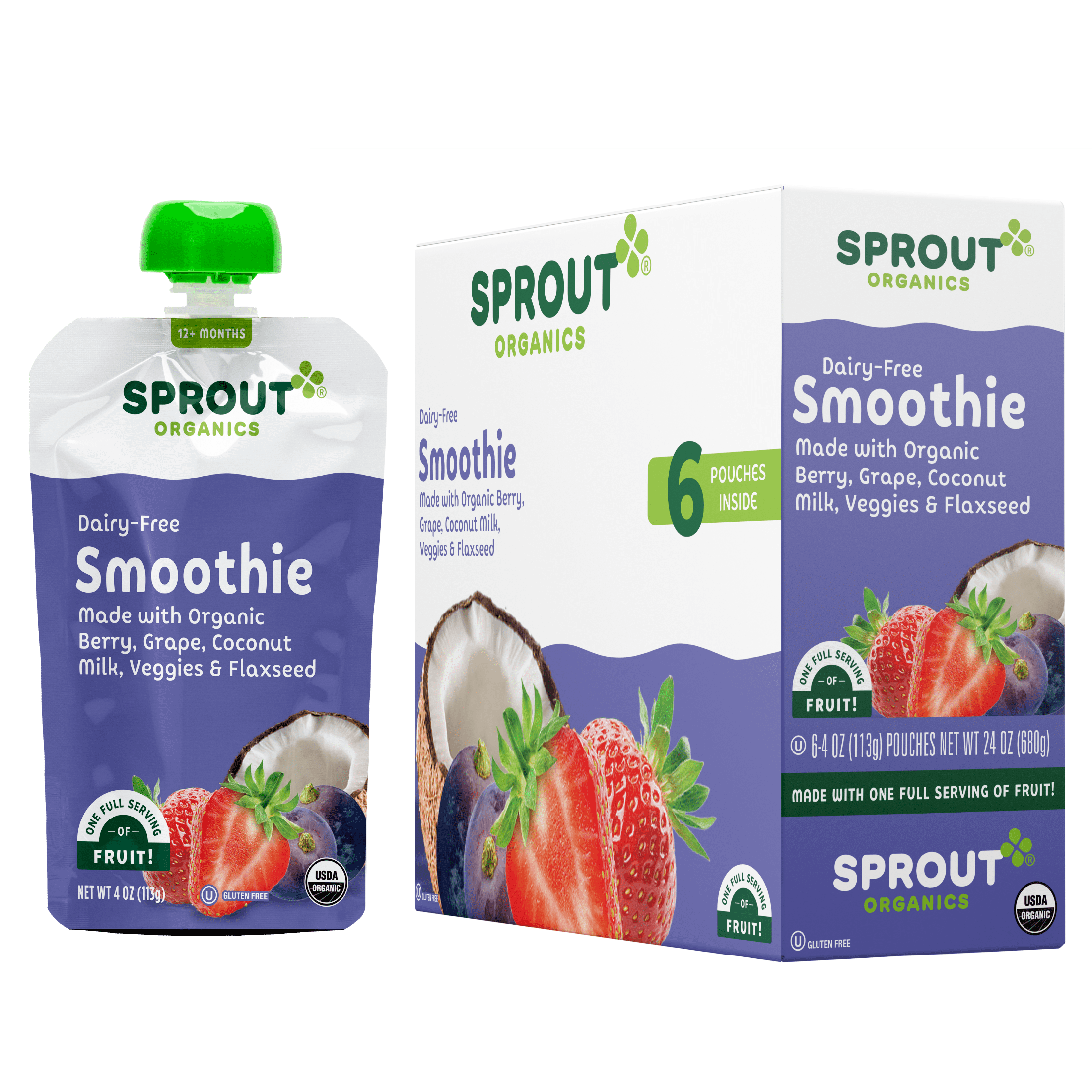 Sprout Organics Toddler Food Organic Berry Grape Dairy Free Smoothie With Coconut Milk 4 Oz Pouches 6 Pack Walmart Com